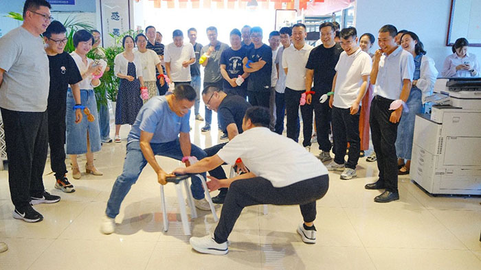 「你畫我猜」環節,每隊派出精兵強將,接力作畫猜詞,只見畫筆在白板上快速游走,傳遞時,隊員們都眉頭緊鎖、神情專注地思考,努力挖取線索,直到后一人喊出正確答案,全場爆發熱烈的掌聲,團隊的默契在這一刻達到,隊員們捧著豐富的禮品都露出勝利的喜悅。