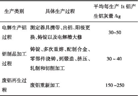所有的鋁冶煉鑄造技術中都會產生鋁灰,工序不同鋁灰在其中的含量占比也不同,具體見表1。
