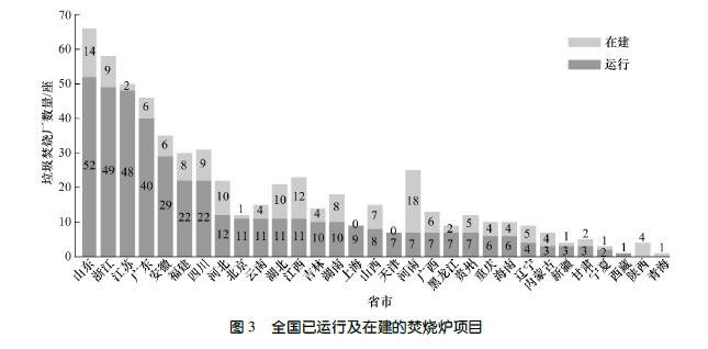 垃圾處理的主流技術(shù),在經(jīng)濟(jì)比較發(fā)達(dá)的城市,垃圾焚燒廠較多,垃圾焚燒發(fā)電在我國進(jìn)入了快速發(fā)展階段。如圖3 所示,截至2019 年2 月,我國(不包含港、澳、臺(tái)地區(qū))在運(yùn)行的生活垃圾焚燒廠數(shù)量已達(dá)到418座,還有167 座正在建設(shè),其中,機(jī)械爐排爐占80%以上。