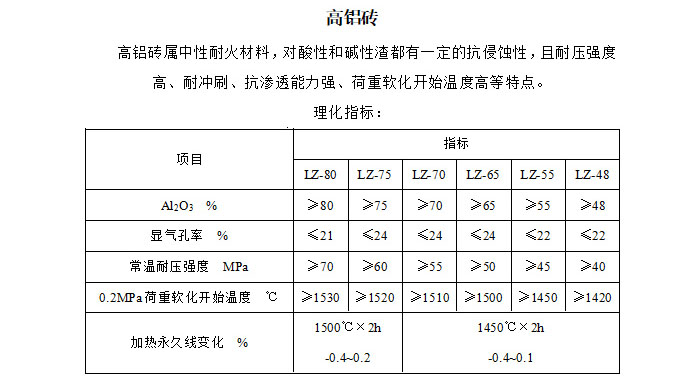 高鋁磚相關理化指標: